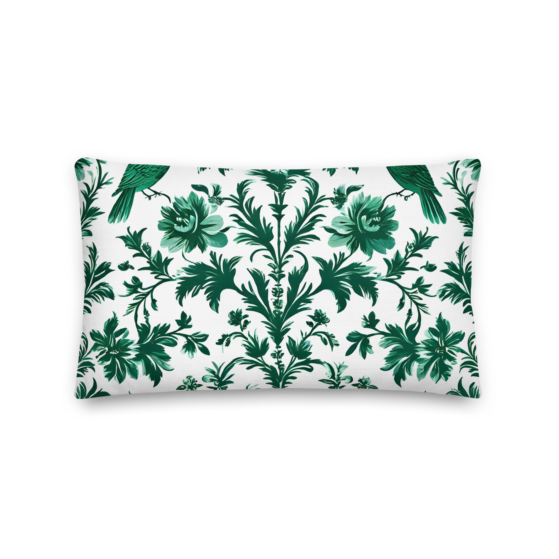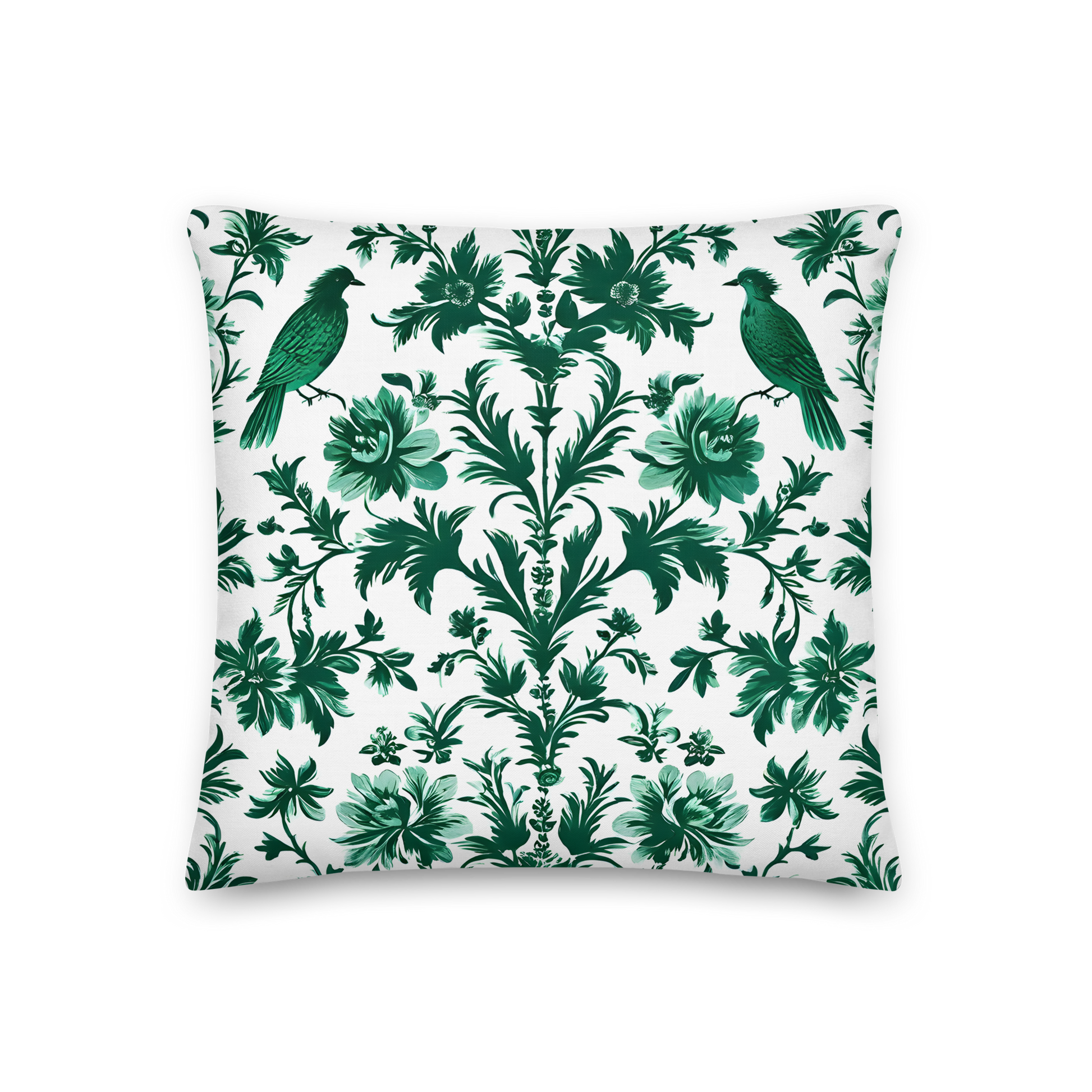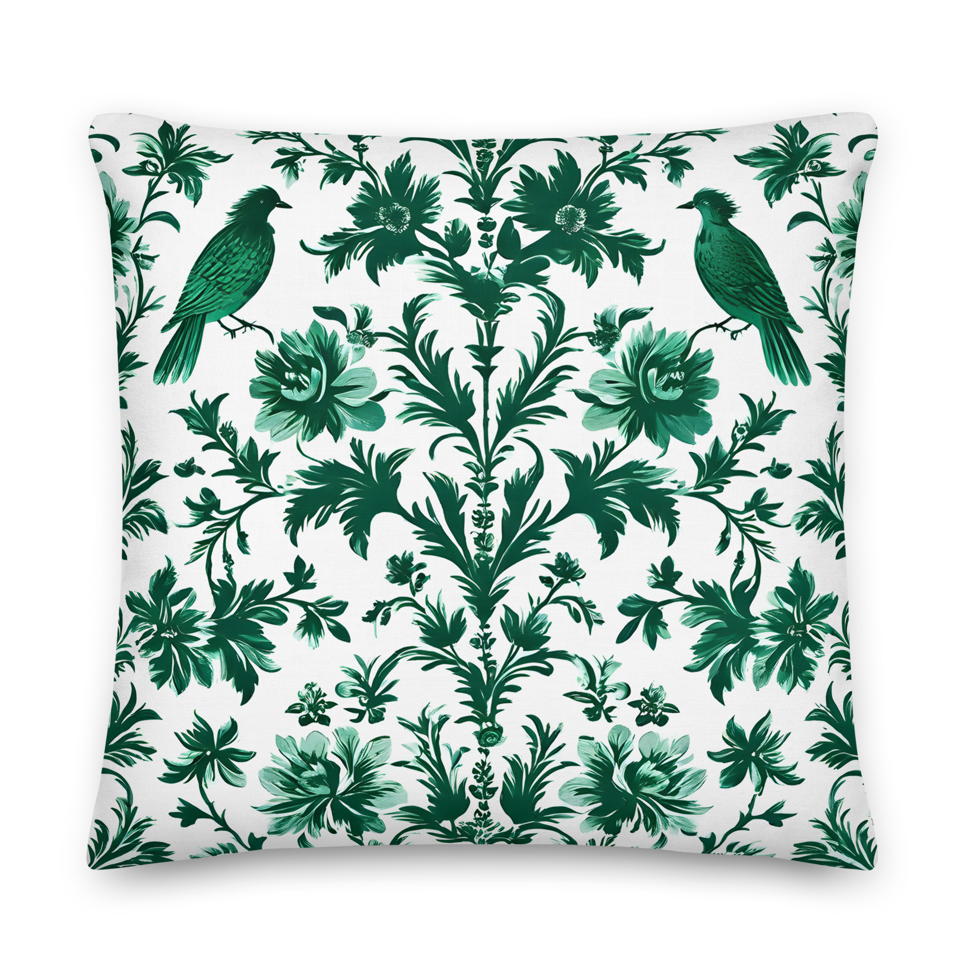 Discover the incomparable world of our decorative cushions that will transform your home into an oasis of sophistication. This cushion features an elegant, symmetrical pattern with green bird and floral illustrations on a white background. Inspired by nature, it embodies the beauty and grace of birds and flowers to artful perfection. A timeless piece that decorates your living spaces with elegance and naturalness.