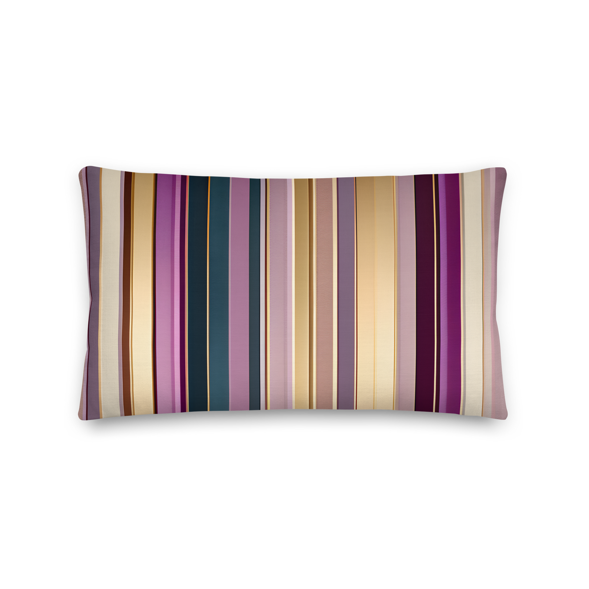 Discover the incomparable world of our decorative cushions that will transform your home into an oasis of sophistication. This cushion is a tribute to contemporary elegance. The dynamic stripes, from soft gold to deep purple, meet contrasting lines for a modern statement. A touch of style for sophisticated interiors.