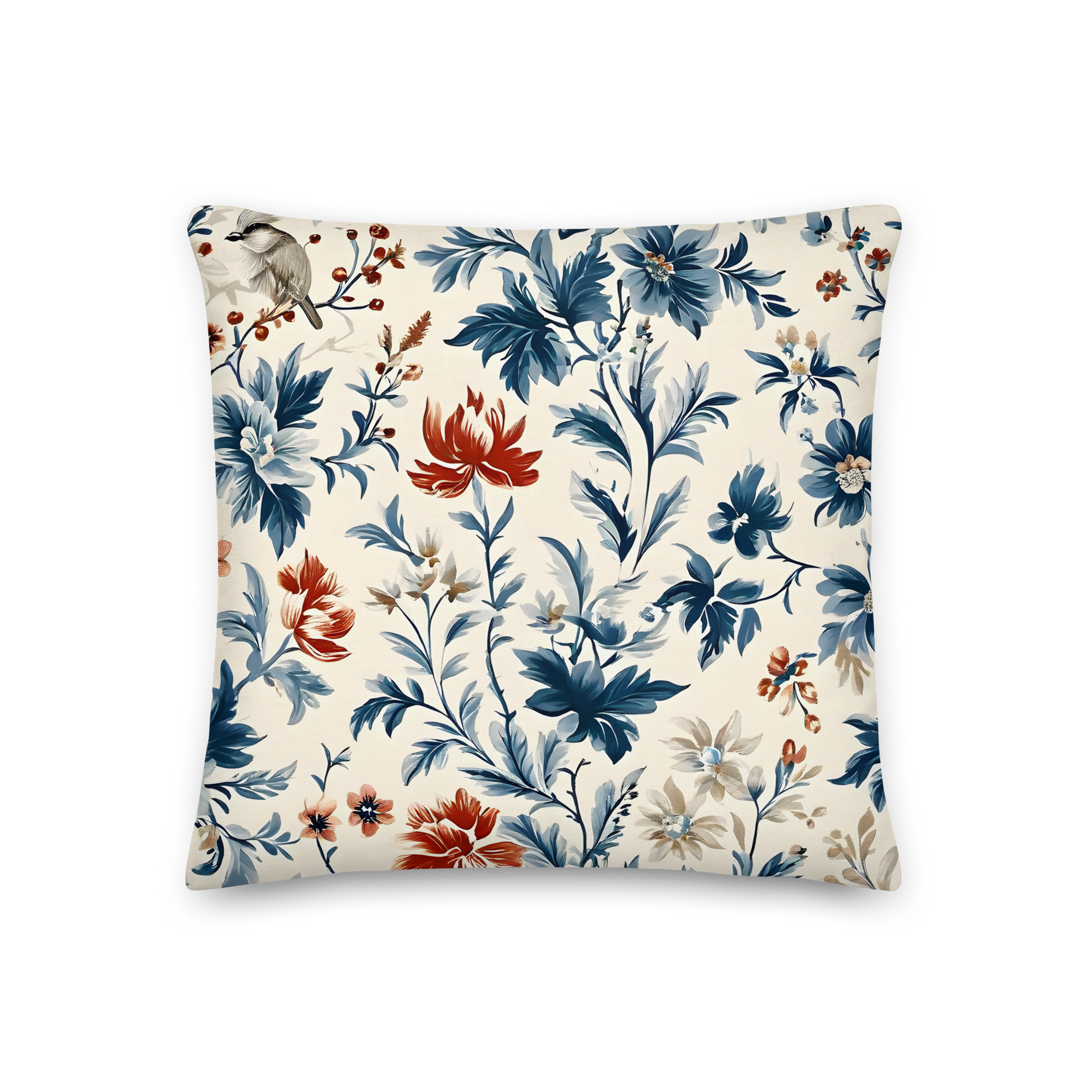 Discover the incomparable world of our decorative cushions that will transform your home into an oasis of sophistication. The elegant cushion, with its botanical pattern in blue and red on a cream background, pays homage to the timeless beauty of classic illustrations. The even arrangement gives the room a balanced and sophisticated feel that perfectly complements a touch of luxury.