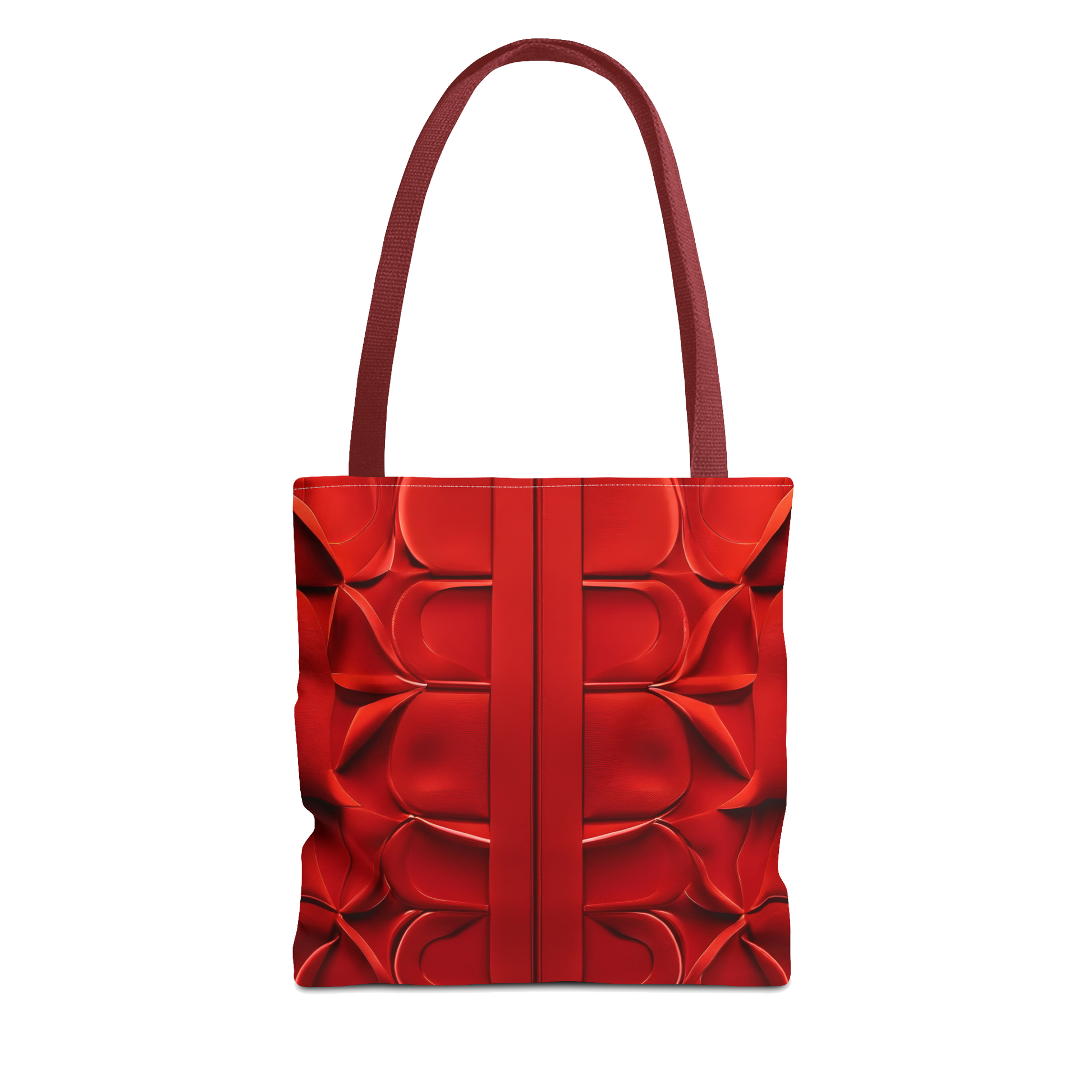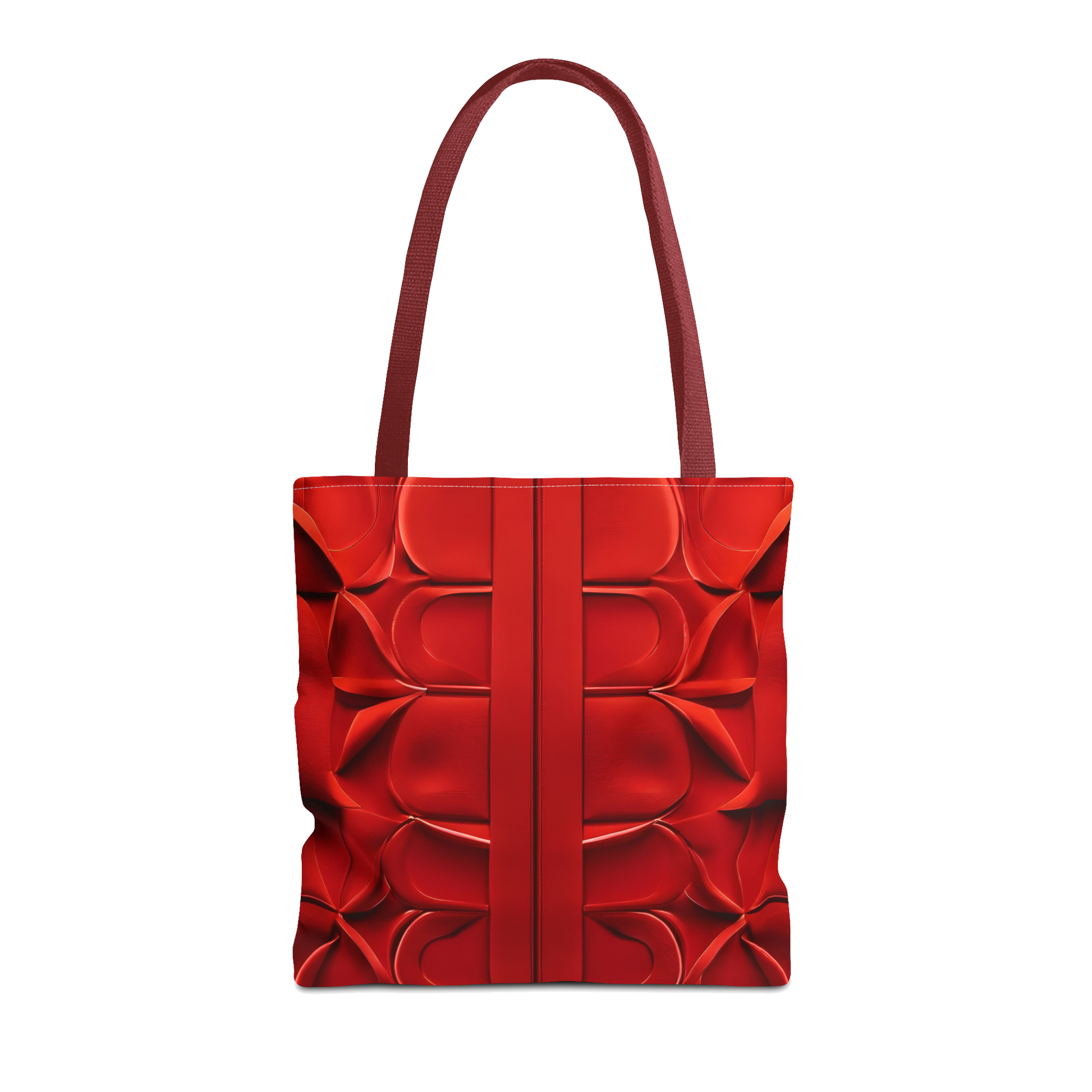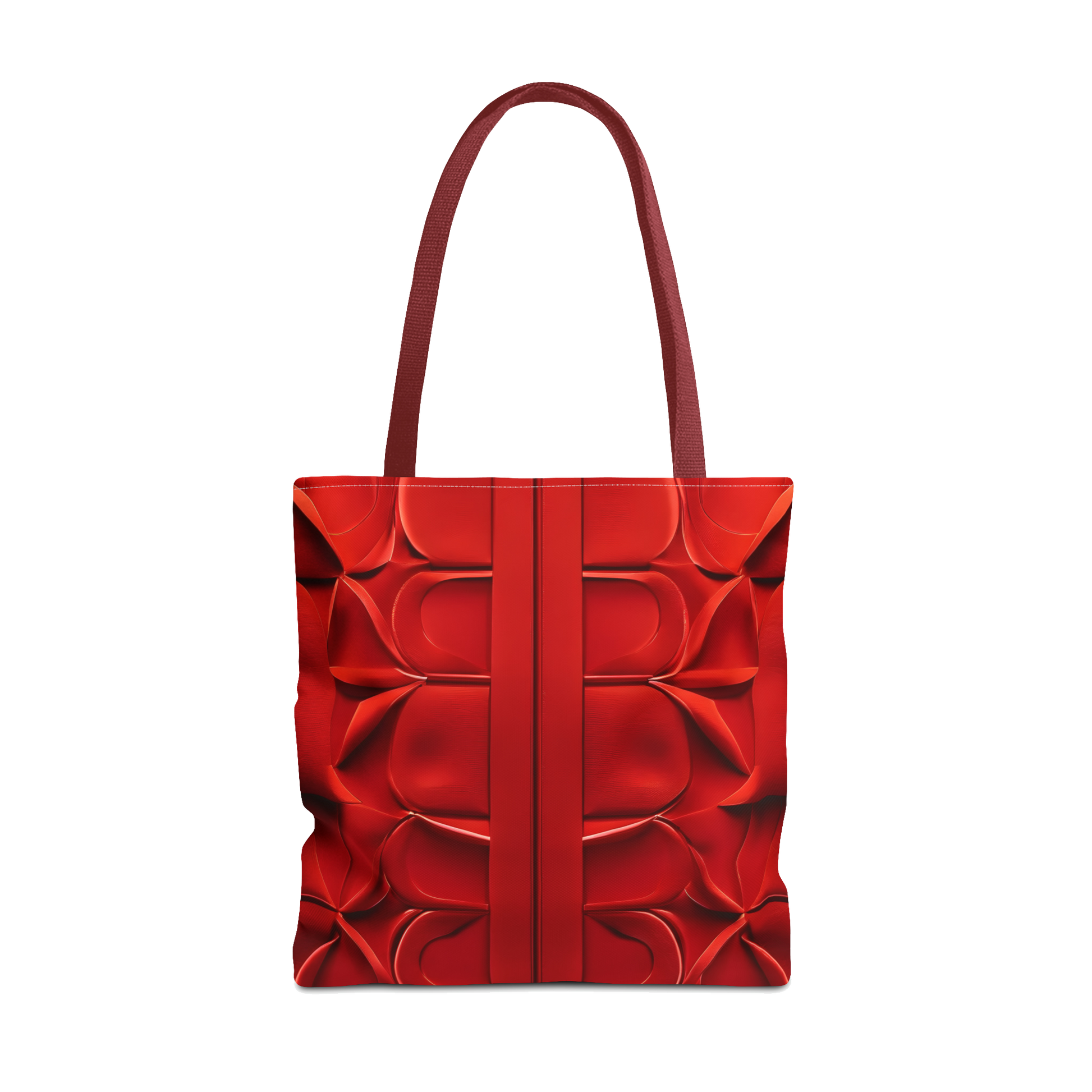 This tote bag's pattern was inspired by a fascination with depth and texture. Repeated geometric shapes merge into a symmetrical, three-dimensional design that creates the illusion of depth. A smooth, vertical stripe runs through the pattern, creating a powerful contrast and underlining the sophistication of the overall design. The structured handles not only provide a comfortable grip but also complete the visual experience of this bag. The result is a modern and stylish appearance that makes the tote bag an unmistakable statement.