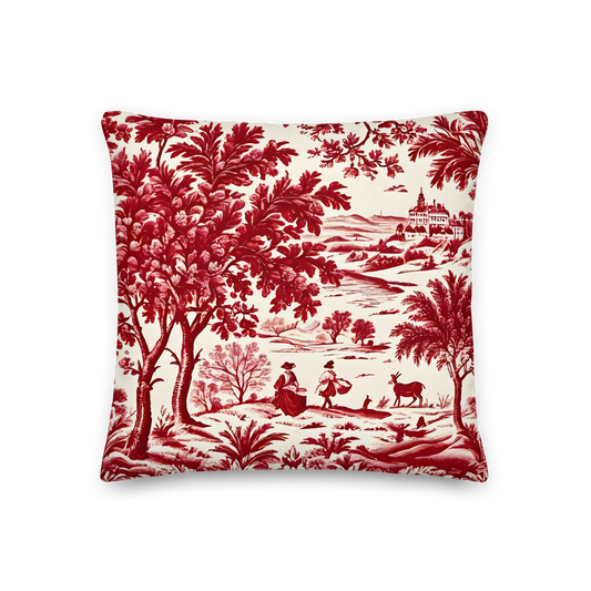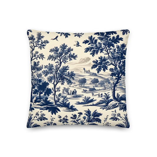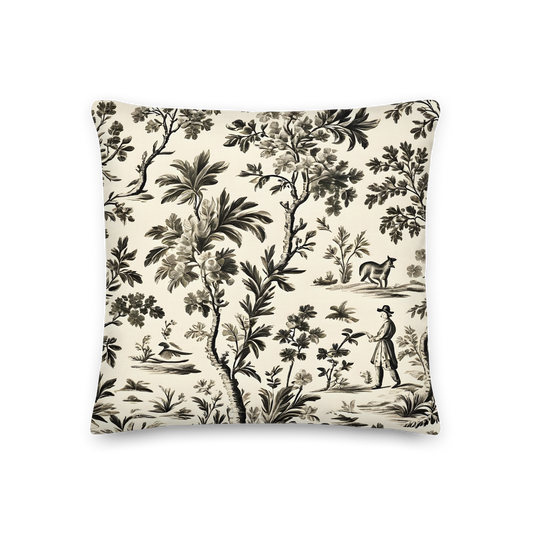 Met de hand genaaide sierkussens in Toile de Jouy-stijl presenteren klassieke motieven in fijne lijnen. Het ontwerp, typisch voor de Franse esthetiek, toont idyllische landschappen of scènes uit het dagelijks leven in delicate, monochrome tinten op een witte achtergrond. Het zorgvuldige handwerk geeft elk kussen een uniek, nostalgisch tintje.